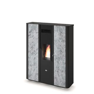 Der besonders flache, kanalisierbare, belüftete Pelletofen Souvenir Petra Evo der Marke EXTRAFLAME verfügt über eine Nennleistung von 10,2 kW, wodurch er ein Volumen von bis zu 293 m3 heizen kann. Dieser Ofen ist mit einer Natursteinverkleidung ausgestattet, die die Wärme speichert, so dass sie nach dem Erlöschen des Feuers über einen längeren Zeitraum wieder abgegeben werden kann.