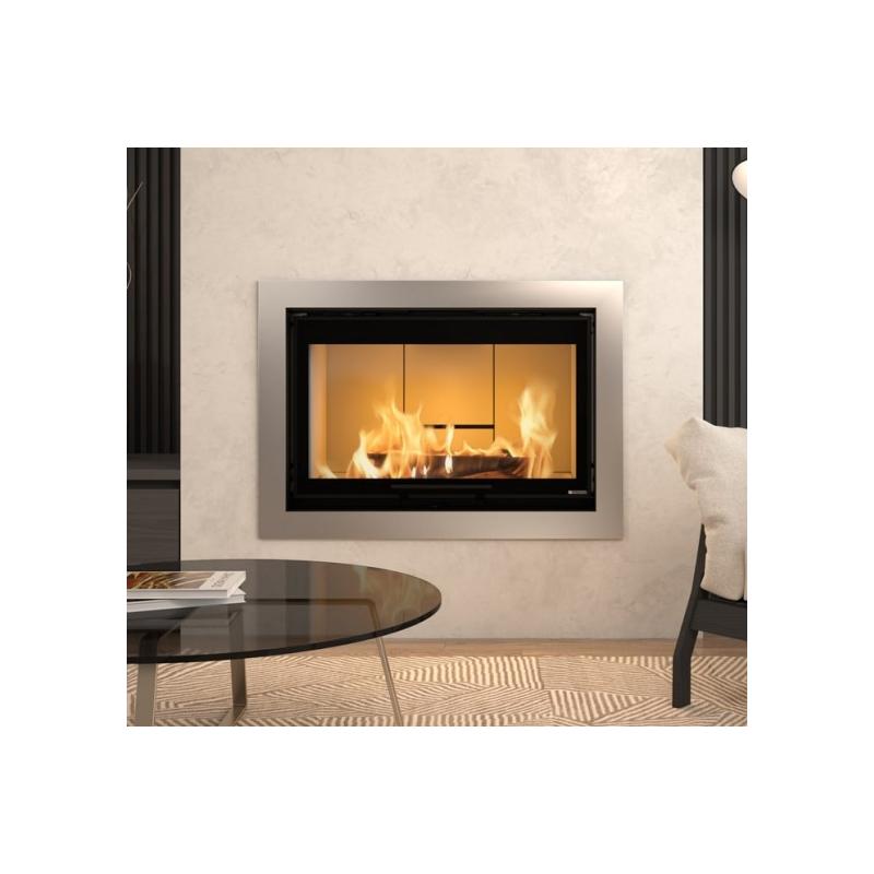 Dieser Holzeinsatz verfügt über einen direkten Lufteinlass und kann in BBC-Häusern installiert werden. Mit seinem Standardgehäuse kann dieser effiziente Heizkörper so installiert werden, dass er über diese 2 kanalisierbaren Auslässe Nebenräume beheizen kann.